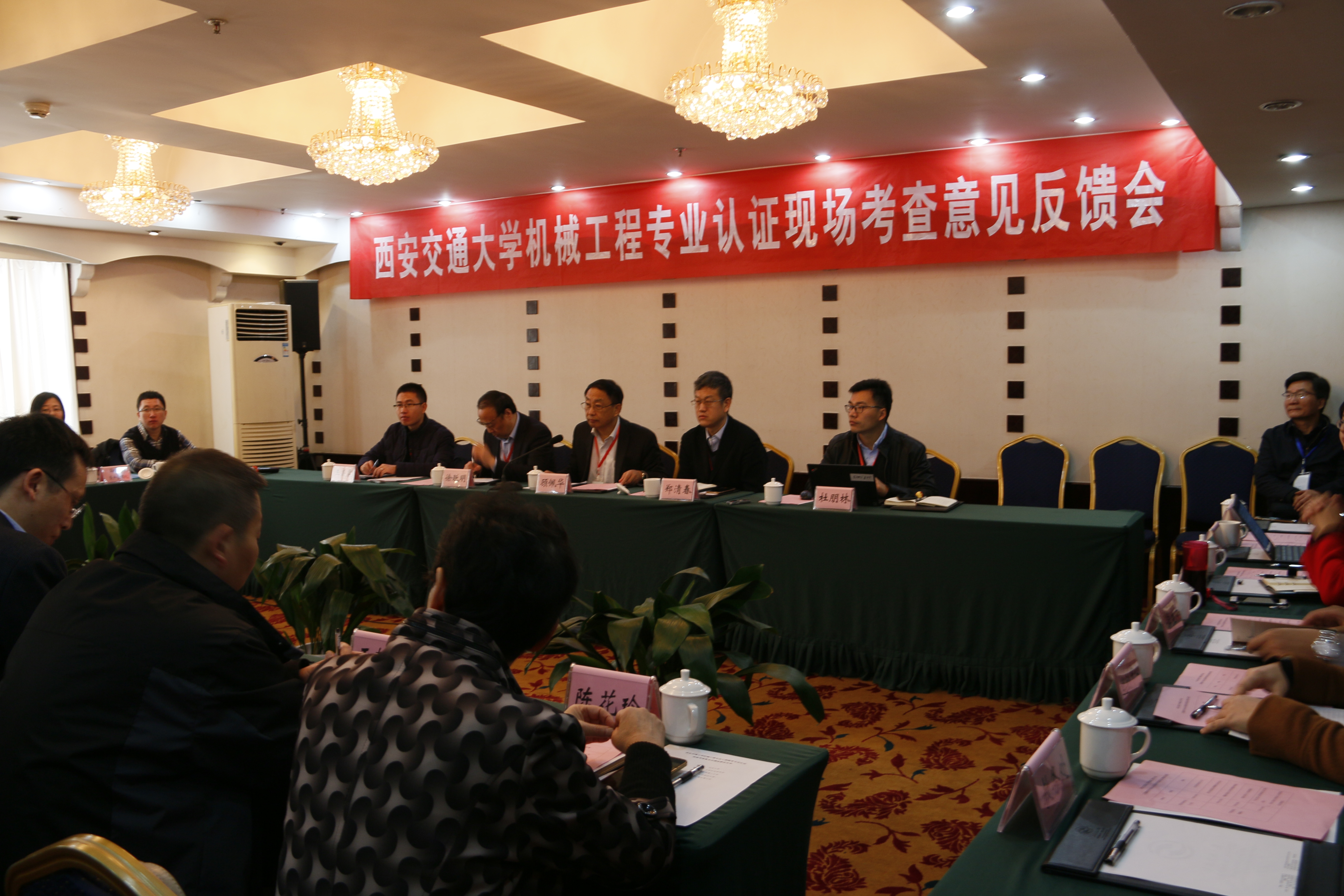 11月15日上午,专业认证专家组在西安交大学术交流中心8C会议室现场召开机械工程专业认证现场考查意见反馈会。王树国校长到会听取意见,原副校长于德弘,教务处副处长王小华、机械工程学院院长陈雪峰、党委书记王朝晖...