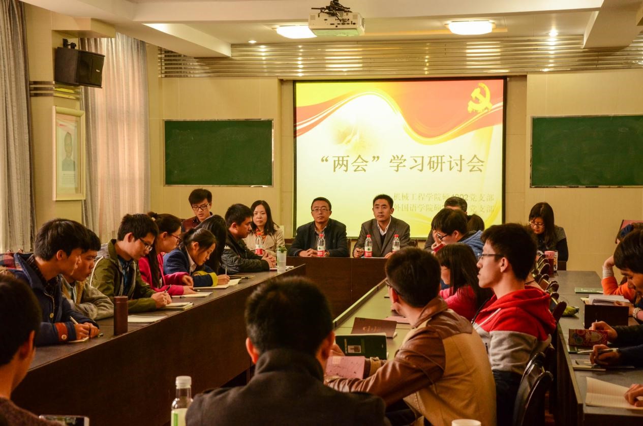 两会进行时,党员学习周。2015年3月14日,机械工程学院硕4002班党支部联合外国语学院硕2014级党支部举行“两会”研讨会,会议在西二楼机械工程学院第三会议室举行。人文学院副院长燕连福教授应邀担任主讲嘉宾。机械工...
