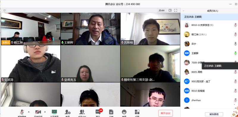在了解了同学们及家人的目前生活状况后,博士辅导员杨潇老师表示,同学们的点滴困难都牵动着学院老师们的心,对于大家生活上的困难,大家一定及时跟老师沟通,学院会尽最大努力,与同学们共克时艰。19级硕士辅导员杨江坤老师谈到如果有需要,可以去教研室给同学们邮寄资料以及给教研室电脑打开远程控制,同时杨老师关心大家在家的心理状态,下周会联系心理中心的老师给大家开一个心理线上交流会。