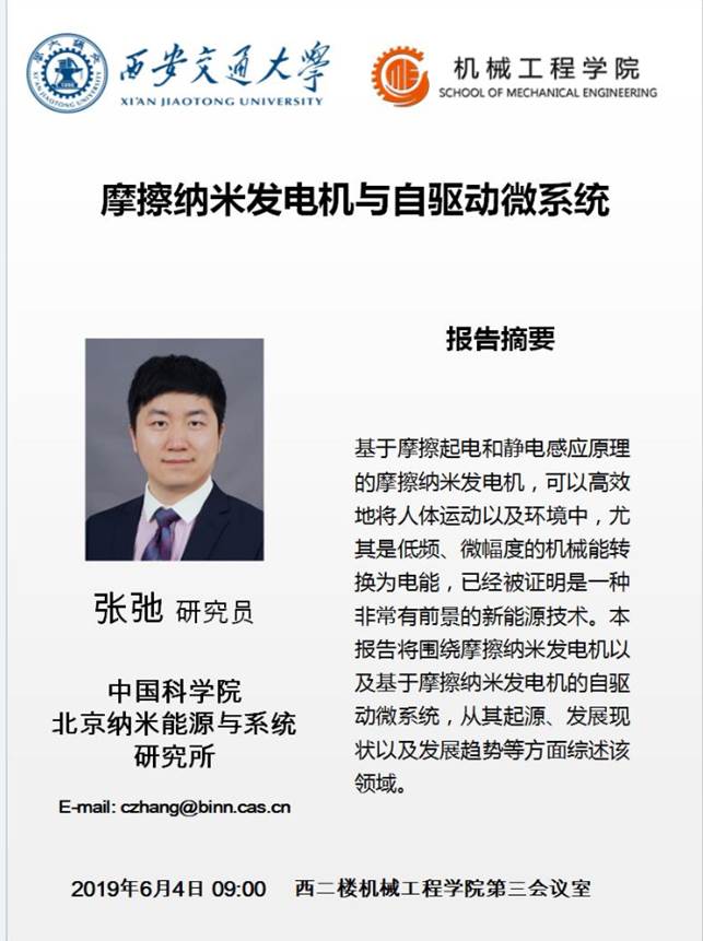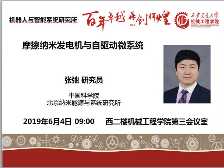 “摩擦纳米发电机与自驱动微系统”学术报告——中科院张弛