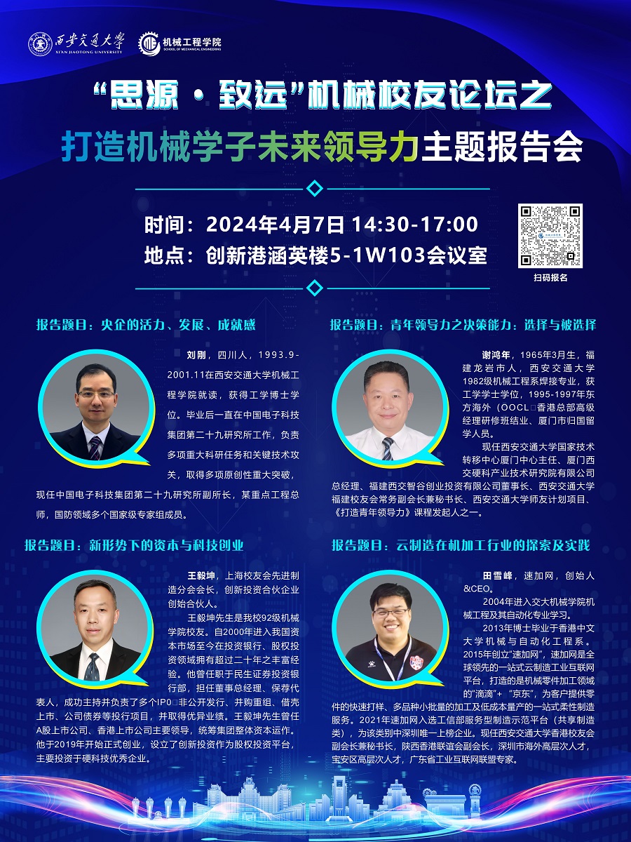 “思源•致远”机械校友论坛之打造机械学子未来领导力主题报告会