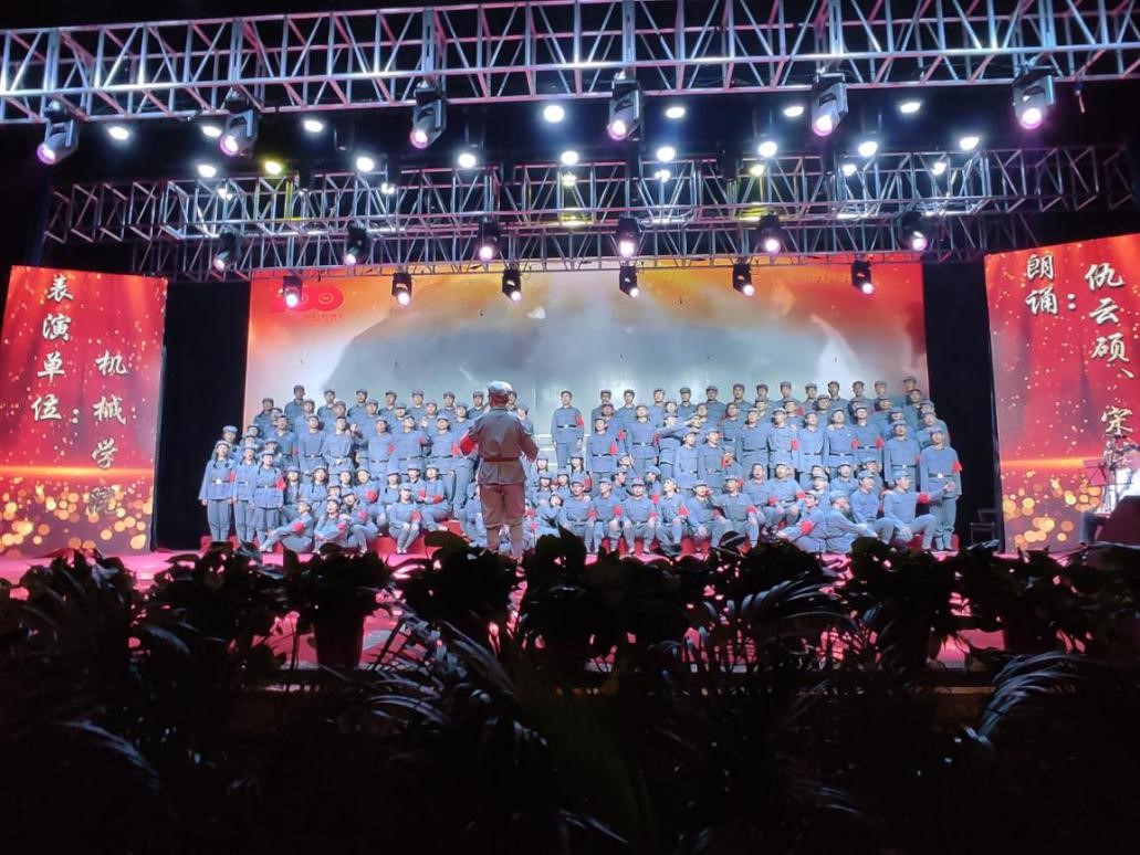 为庆祝建党百年华诞,重温党的光辉历史,在“七一”前夕,西安交通大学举办了主题为《听党指挥跟党走,新长征路上立新功》的红色经典音乐史诗《长征组歌》合唱演出。机械学院师生负责演出其中的第六章《过雪山草地》,用歌声带大家重温漫漫长征路,讲述红军过雪山草地艰难困苦的情景,共同体会红军不畏艰难、豪迈乐观的英雄气概和钢铁意志。